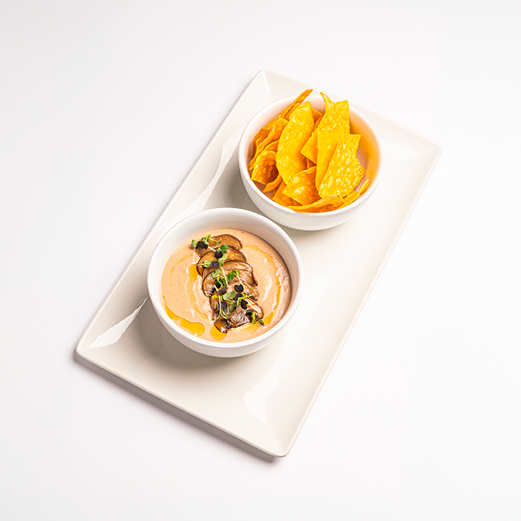 Humus de alubia pinta alavesa con natxos y shitakes marinados 10,50€